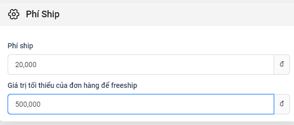 Ví dụ: Nếu doanh nghiệp cấu hình mức giá trị tối thiểu là 500.000 VND, thì khách hàng sẽ được miễn phí ship khi đơn hàng của họ có giá trị từ 500.000 VND trở lên.