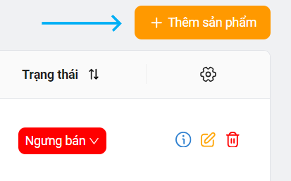 Các nút thao tác trên trang Danh sách sản phẩm