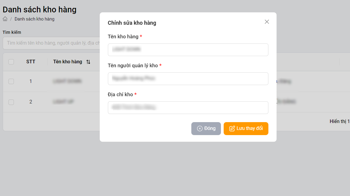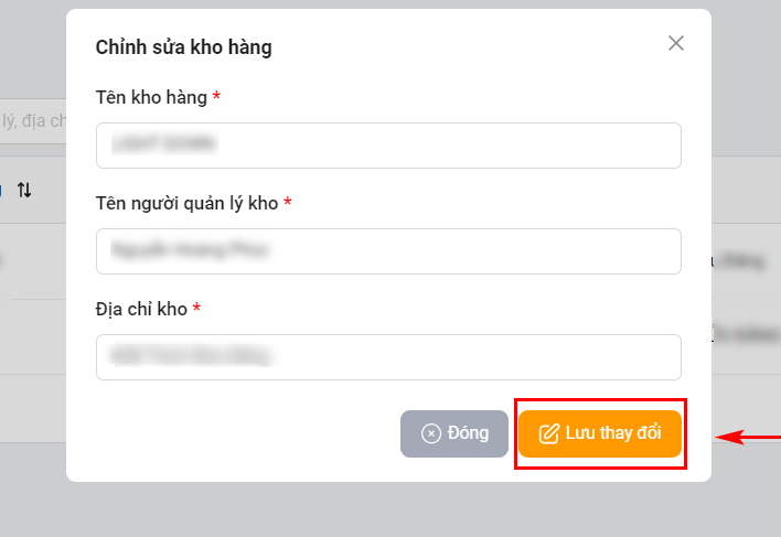 Chỉnh sửa thông tin kho hàng