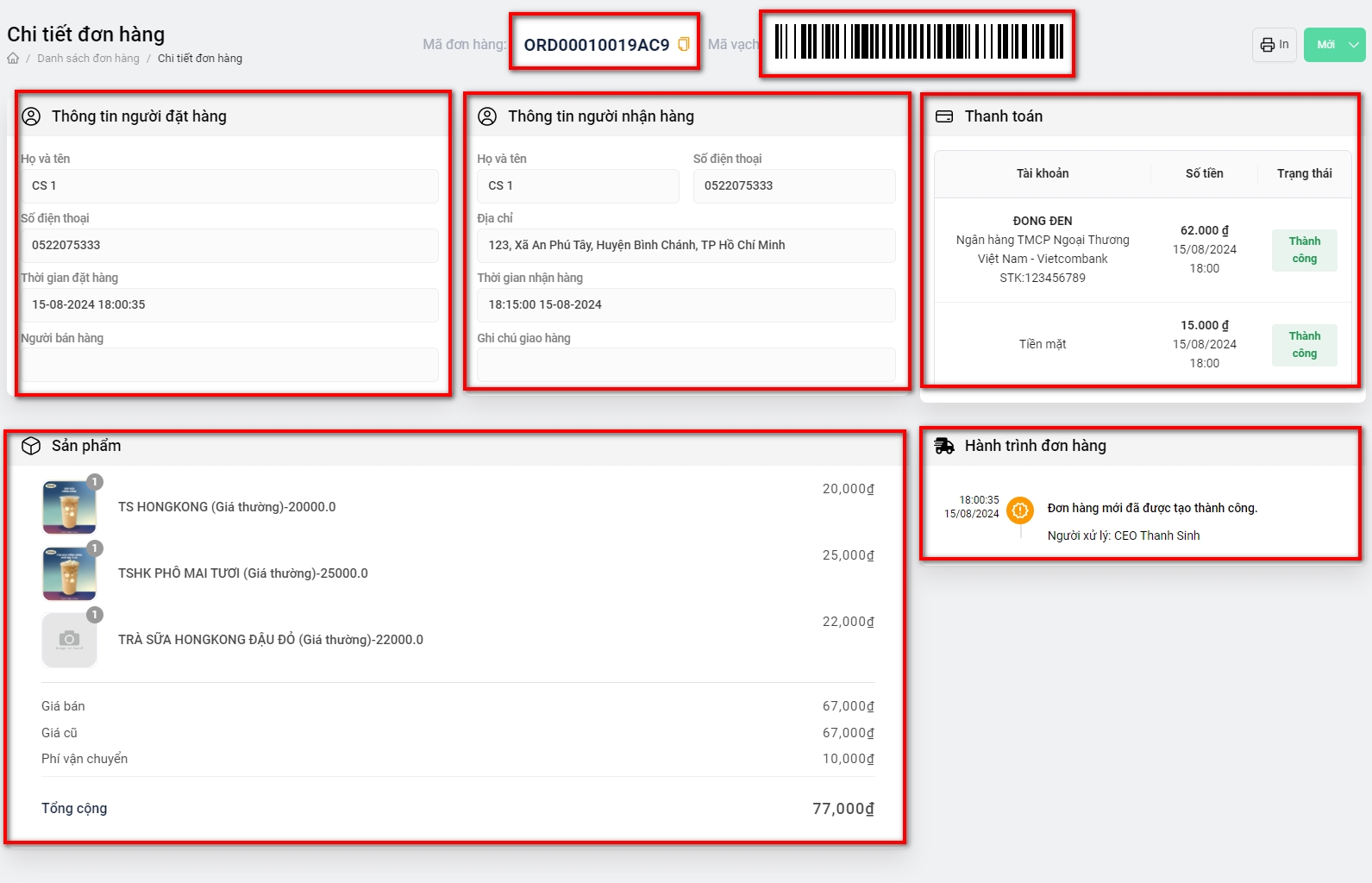 Để có thể xem được trang Chi tiết đơn hàng, chọn