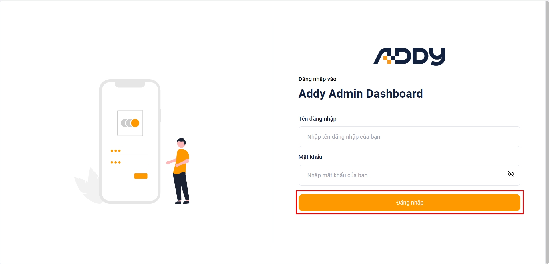Bước 1: Vào trang đăng nhập của Addy Sale Pro hoặc theo đường dẫn